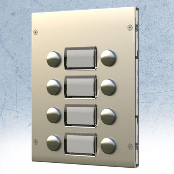 Button expansion module (double row). 8 Call push buttons. Aluminium and Stainless Steel finishes. When ordering modules, suffix the product code with /A for aluminium or /S form stainless steel.