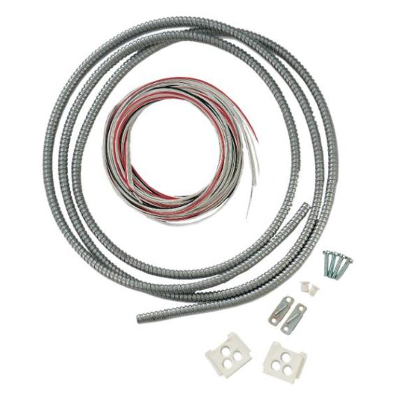 Armoured cable kit including a flexible stainless steel conduit of 8 conductors cables and mounting accessories.