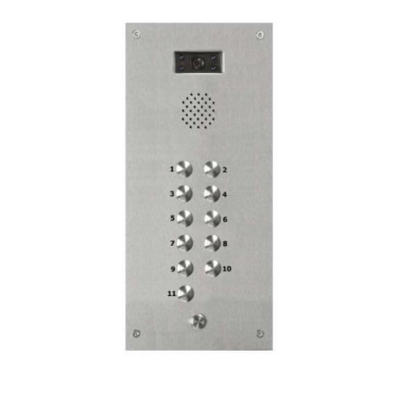 Eleven button vandal resistant panel is manufactured from 2.5 mm 316 marine grade stainless steel. The panel comes with a zintec back box which is used for a flush mount installation.
