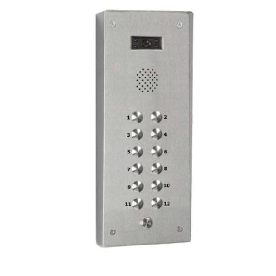 Twelve button surface mounted vandal resistant panel is manufactured from 2.5 mm 316 marine grade stainless steel.