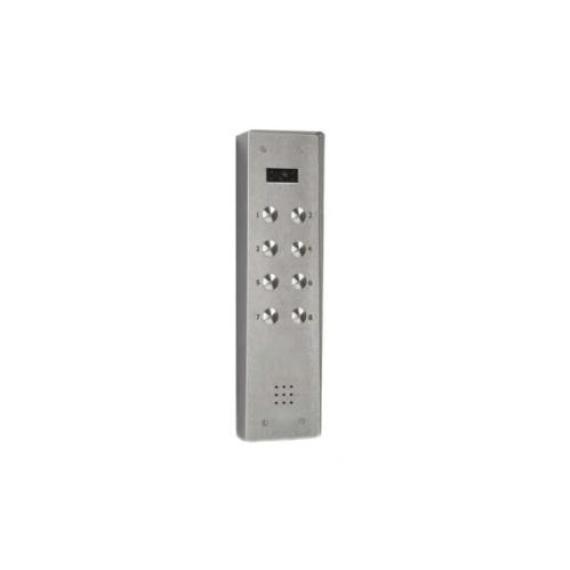 The BSP10 is part of the Bellissimo digital range, featuring a contemporary faceplate manufactured from 3mm brushed anodised aluminium. This material offers excellent resistance to corrosion while maintaining a modern aesthetic. Designed for surface mounting, the panel is supplied with a low-profile black-moulded mounting box, making it an ideal choice for installations where wall recession is not possible or desired. The system utilizes standard CAT5/CAT5e cabling for all data, video, and audio signals, ensuring a simplified installation process across all ten stations.
