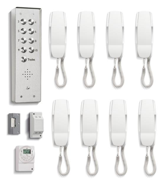 The VRK Vandal Resistant Systems have been devised for areas that are prone to external vandalism. Each system provides all of the components necessary to install a complete audio door entry system; including a surface lock release as standard. These systems are available from a one way (model VRK8-S) up to any size.