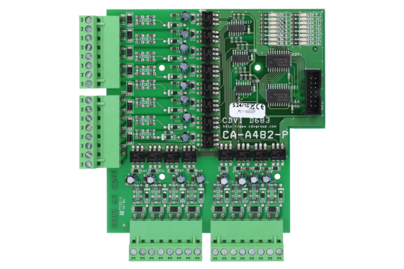 The CAA-482P has 16 inputs, one for each control relay of the CAA-480A elevator controller. This destination module is designed to eliminate elevator cab tailgating. Each user must present their card to select a floor button. Once a card is presented, the user can only select one floor. Once the floor is selected, all other floor selection buttons are deactivated. The user must present their card again in order to select another floor. Every presentation and floor selection is stored by the system which also registers valid and invalid transactions.