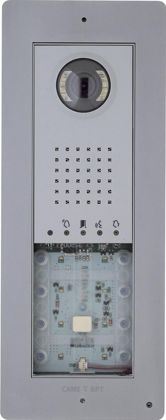 Semi-modular, monolithic video intercom entry panel for XIP systems, Metal finish.