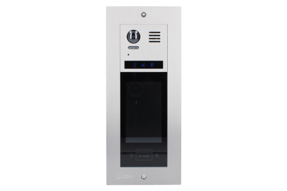 The CDV-T5F is a stylish digital door station in the 2EASY 2-wire range. Featuring a fisheye camera with 170-degree viewing angle and a built-in proximity and MIFARE® reader, the door station is a flexible solution for apartment buildings and gated communities. All programming is done directly through the touchscreen – no additional software is required. This model is flush mount and is compatible with all 2EASY 2-Wire system accessories.
