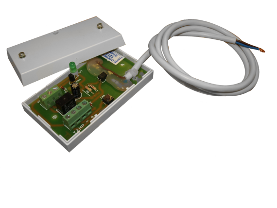 Mains fail detector. For use with 12V DC power supplies. Detects absence and presence of a mains supply via an optoisolator. Mains fail input via 200 mm fly lead. Output via SPCO clean contacts. White ABS case, fitted with tamper switch.