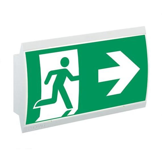 • Exit signs with high luminance of > 500 cd/m² (white area) and good uniformity, in accordance with standards (silk-screened pictograms)