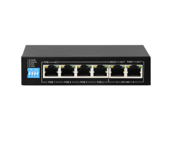 | Datasheet for Genie, IP4GESP2, 6 Port Gigabit AI 4 Port PoE Switch, Four working modes - AI VLAN, AI Extend, AI PoE and AI Qos | Download |