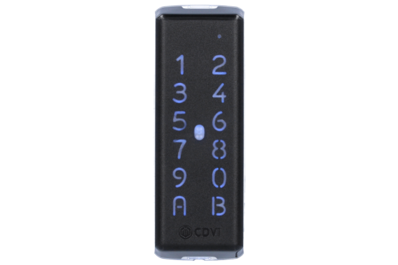 CDVI’s slim KRYPTO K4 Bluetooth card reader/ keypad makes high security easy! The reader is compatible with MIFARE® DESFire® EV2 credentials. Factory-programmed, industry-unique secure CDVI protocol and encryption keys ensure end-to-end encryption between the card, reader/keypad, and A22K door controller.
