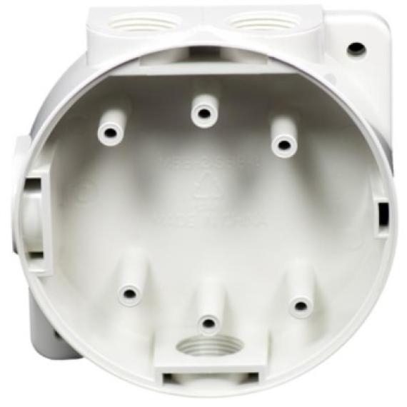 MBB-2, A Marine Back Box providing a splash proof and secure fixing for the Hochiki ESP?and CDX Marine Approved Range of Sensors and Detectors and their associated Bases. Provides an aesthetically pleasing solution where surface fixed devices are required. The housing supports four 20mm glanded entries for cabling access.
