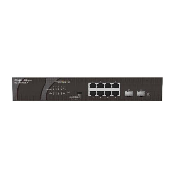 | Datasheet for RG-ES110GDS-P, 8 x 1000M copper ports and 2 x 1000M uplink SFP ports: 8 ports for PoE/PoE+, with the maximum PoE power up to 120 W; unmanaged switch | Download |