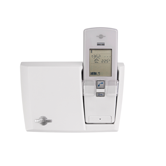 Mains free Multi function, white , w/ Li-ion battery recharged from lithium power pack in base unit.