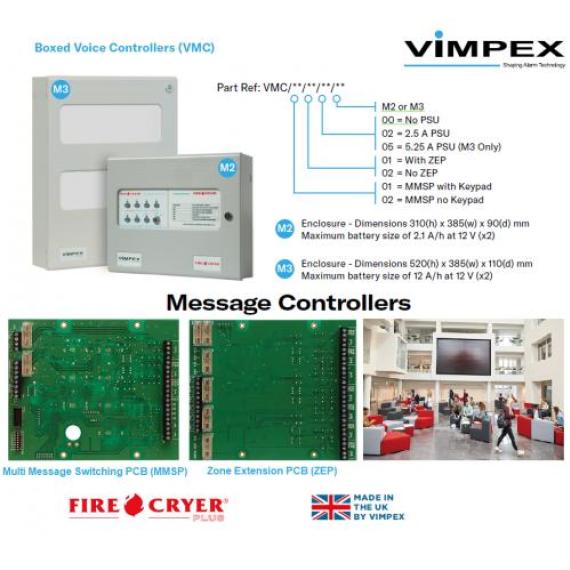 A Voice Controller (VMC) is an MMSP packaged in an enclosure with options for a ZEP, keypad and power supply.