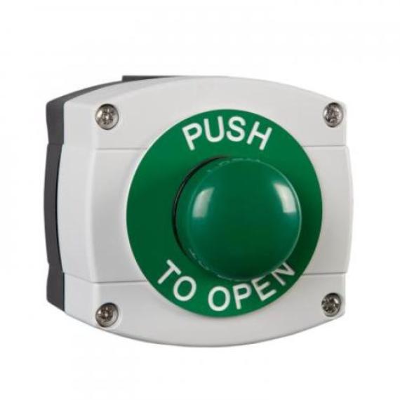 | Datasheet for Weather Proof IP66 rated Plastic housing in Grey/Black with Large Green button surface mounted, PUSH TO OPEN. 2 x 20mm cable entry holes. Size 85h x 90w x 60d to 80 (all mm - d =back box only) | Download |